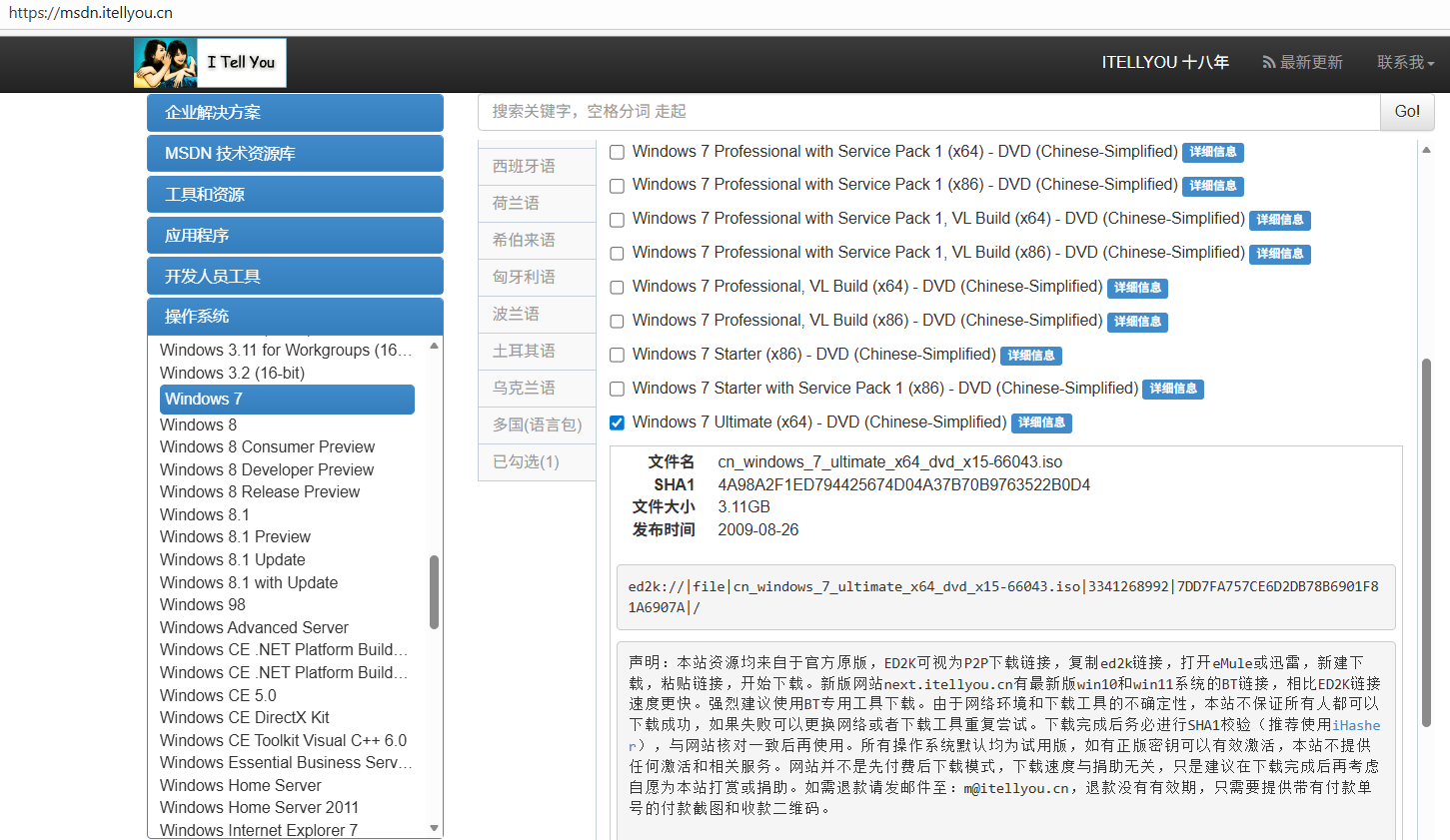 以上方法未解决问题的,因为我没有办法模拟到相应的系统环境,暂时没有直接的解决办法,建议升级系统到win10及以上系统。有基础的可以重新安装系统,现提供一个官方win7系统地址下载链接,里面还有其它系统可自行研究下载安装。